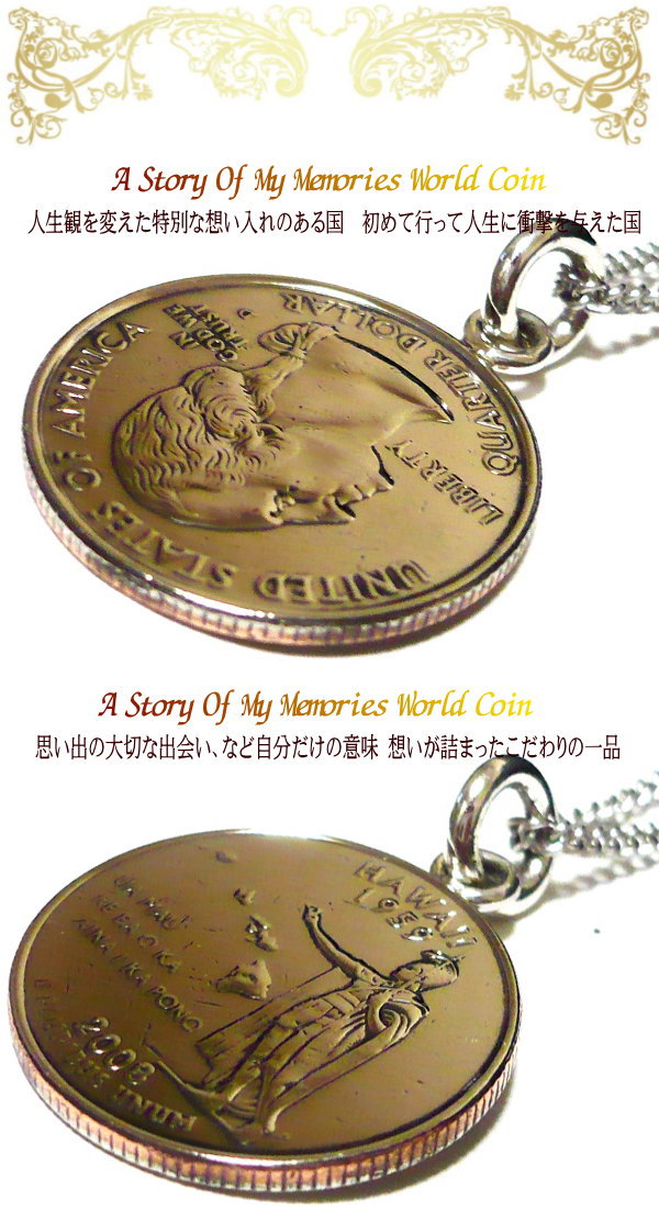 ハワイ アメリカ ハワイ州 世界のコイン 刻印無料 刻印 コイン ネックレス ペンダント ステンレス チェーン 外国 世界 外国コイン コインネックレス コインペンダント ステンレスチェーン 60cm ( 40cm 45cm 45cm 50cm 調整可) ネックレスチェーン ステンレスネックレス