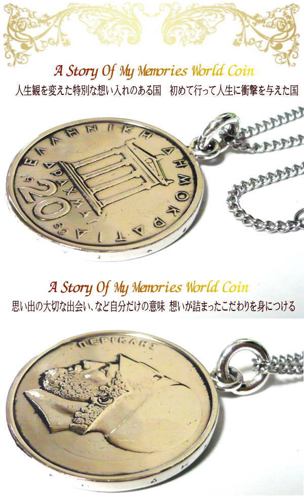 ギリシャ 世界のコイン チタン ネックレス チェーン チタン チタンチェーン チタンネックレス 外国 コイン ペンダント コインネックレス コインペンダント 純チタン チタンチェーン 40cm 45cm 50cm 【世界のコイン+チタンチェーン】