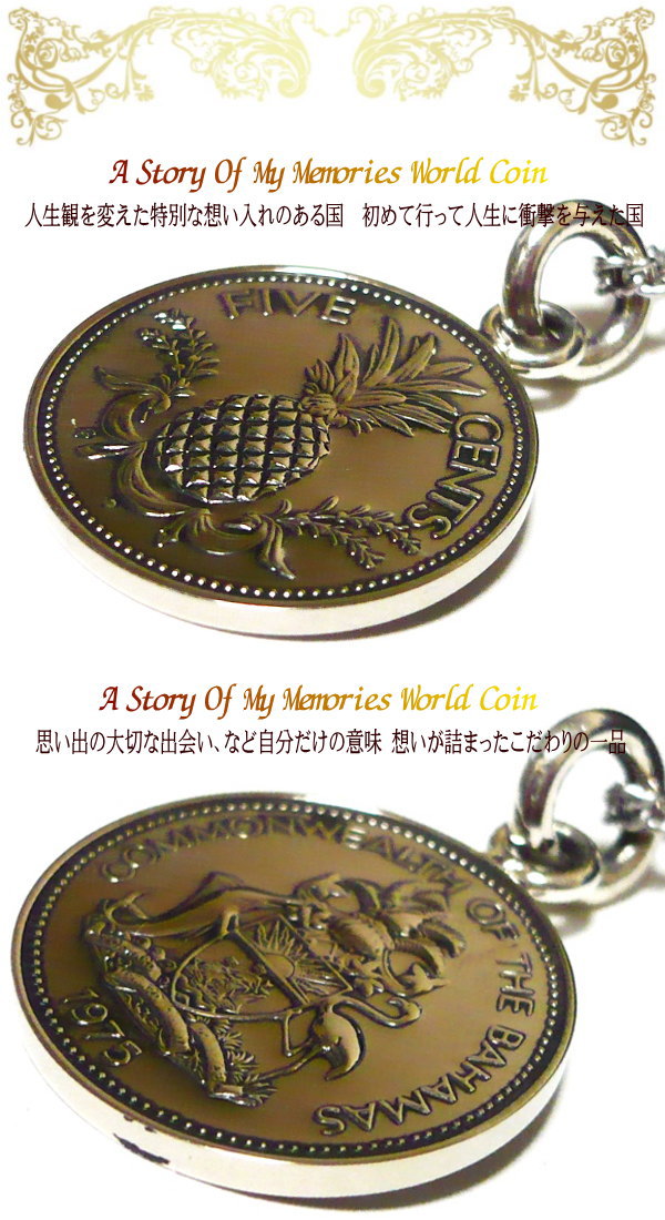 バハマ 世界のコイン 刻印無料 刻印 コイン ネックレス ペンダント ステンレス チェーン 外国 世界 外国コイン コインネックレス コインペンダント ステンレスチェーン 60cm ( 40cm 45cm 45cm 50cm 調整可) ネックレスチェーン ステンレスネックレス 名前 記念日 名入れ