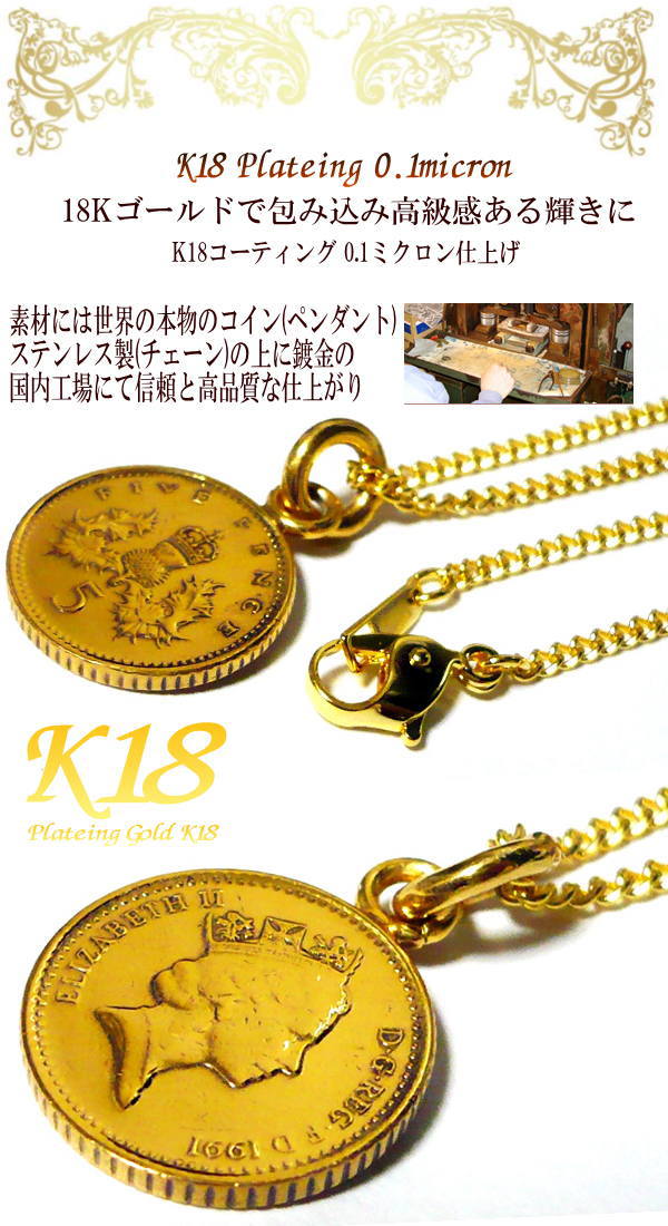 イギリス 18金 18K コーティング コイン ネックレス ゴールド 天然石 ペンダント 世界 外国 海外 ビンテージ 世界のコイン アンティーク 36cm 40cm 45cm コインネックレス コインペンダント ブラックスピネルネックレス ブラックスピネル ネックレス
