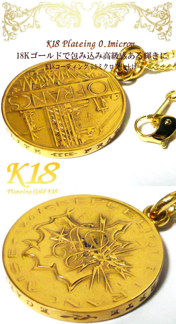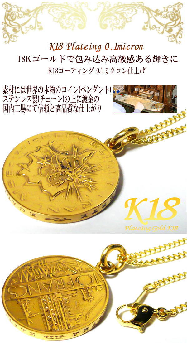 フランス 18金 18K コーティング コイン ネックレス 天然石 ペンダント ゴールド 世界 外国 海外 ビンテージ 世界のコイン アンティーク 36cm 40cm 45cm コインネックレス コインペンダント ブラックスピネルネックレス ブラックスピネル ネックレス