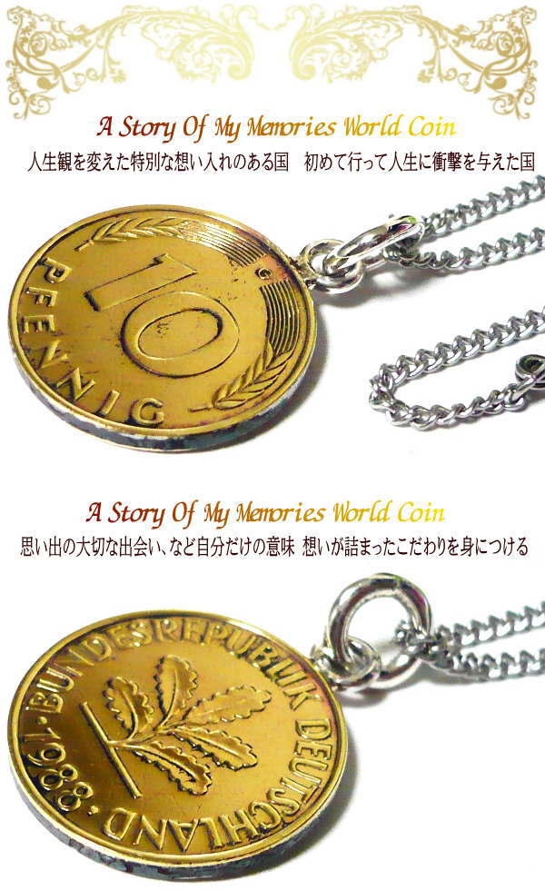 ドイツ 世界のコイン チタン ネックレス チェーン チタン チタンチェーン チタンネックレス 外国 コイン ペンダント コインネックレス コインペンダント 純チタン チタンチェーン 40cm 45cm 50cm 【世界のコイン+チタンチェーン】
