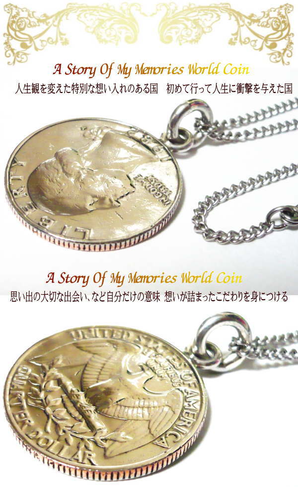 アメリカ 世界のコイン 刻印無料 刻印 コイン ネックレス ペンダント ステンレス チェーン 外国 世界 外国コイン コインネックレス コインペンダント ステンレスチェーン 60cm ( 40cm 45cm 45cm 50cm 調整可) ネックレスチェーン ステンレスネックレス 名前 記念日 名入れ