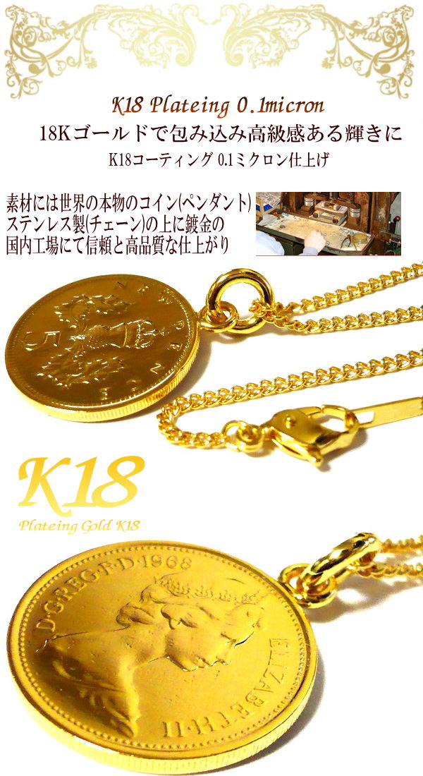 イギリス 18金 18K コーティング コイン ネックレス ゴールド 天然石 ペンダント 世界 外国 海外 ビンテージ 世界のコイン アンティーク 36cm 40cm 45cm コインネックレス コインペンダント ブラックスピネルネックレス ブラックスピネル ネックレス