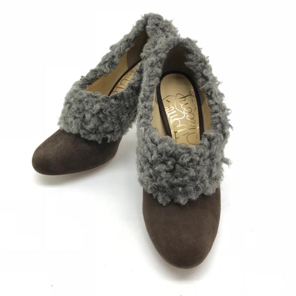 Atomic Green アトミック グリーン ブーティ サイズ 約22.5cm ウールファー ショートブーツ 靴 くつ クツ ピンヒール スエード 女性 レディース ブラウン グレー 管理RY16004197