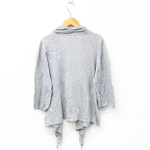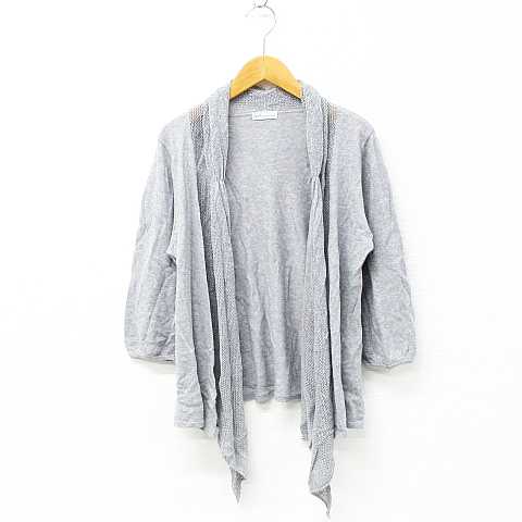 【中古】アースミュージック&エコロジー EARTH MUSIC & ECOLOGY ニット カーディガン ボレロ 七分袖 透かし編み 切替 前下がり ドレープ 薄手 コットン グレー レディース 【ベクトル 古着】 200927 ベクトルプレミアム店