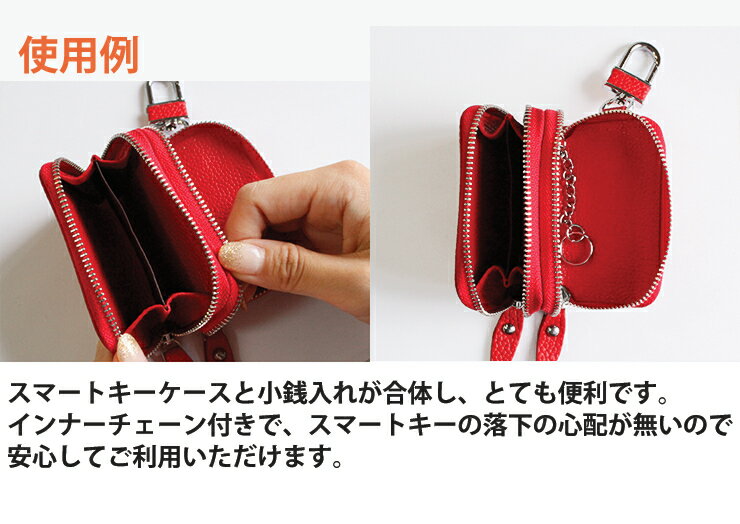 スマートキーケース 小銭入れ付き ダブルファスナータイプ(全6色) 最大の特徴は、スマートキーケースと小銭入れが合体!! 好みのカラーをチョイスして、愛車のボディカラーやインテリアの雰囲気に合わせてコーディネート♪